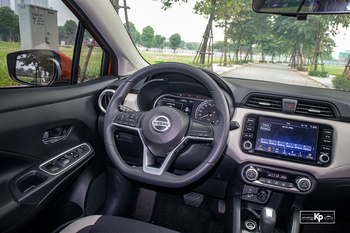 Vô lăng sử dụng trên Almera 2022 là vô lăng chữ D 3 chấu, trên vô lăng tích hợp thêm khá nhiều nút bấm mà lái xe thường xuyên sử dụng để gỡ gạc lại việc màn hình đặt khá xa tầm với của lái xe. Phía sau vô lăng 3 chấu là đồng hồ đo lương nửa điện tử nữa Analog giúp tài xế nắm bắt thông tin tốt hơn.
