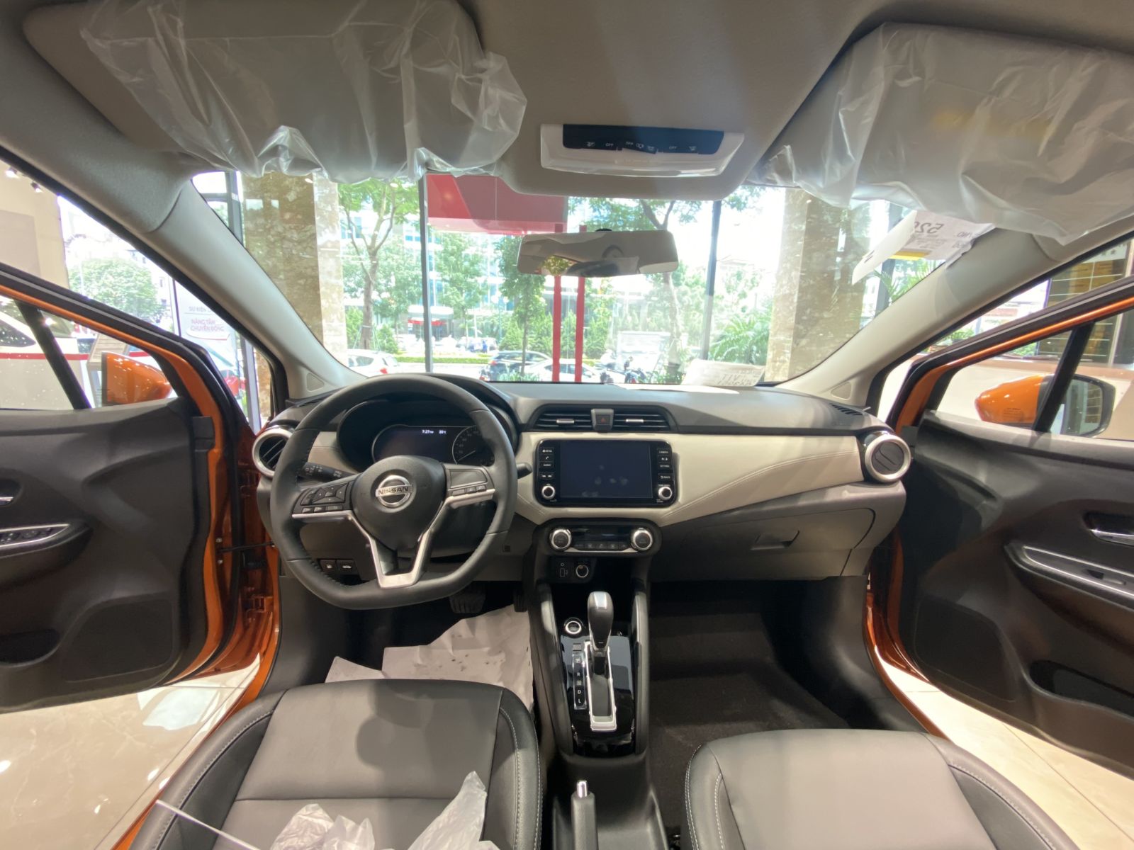 Bảng taplo của Nissan Almera 2022 được thiết kế theo dạng V-Motion giống như thiết kế đầu xe, có thể xem đây là chi tiết nhận diện đặc trưng trên Almera 2022. Chất liệu sử dụng trên bảng taplo là nhựa và da, các đường viền được may bằng chỉ rất tỉ mỉ, xe sử dụng 2 loại cửa gió điều hòa hình vòng cung và hình tròn để giúp tăng tính thể thao cho khoang lái.
