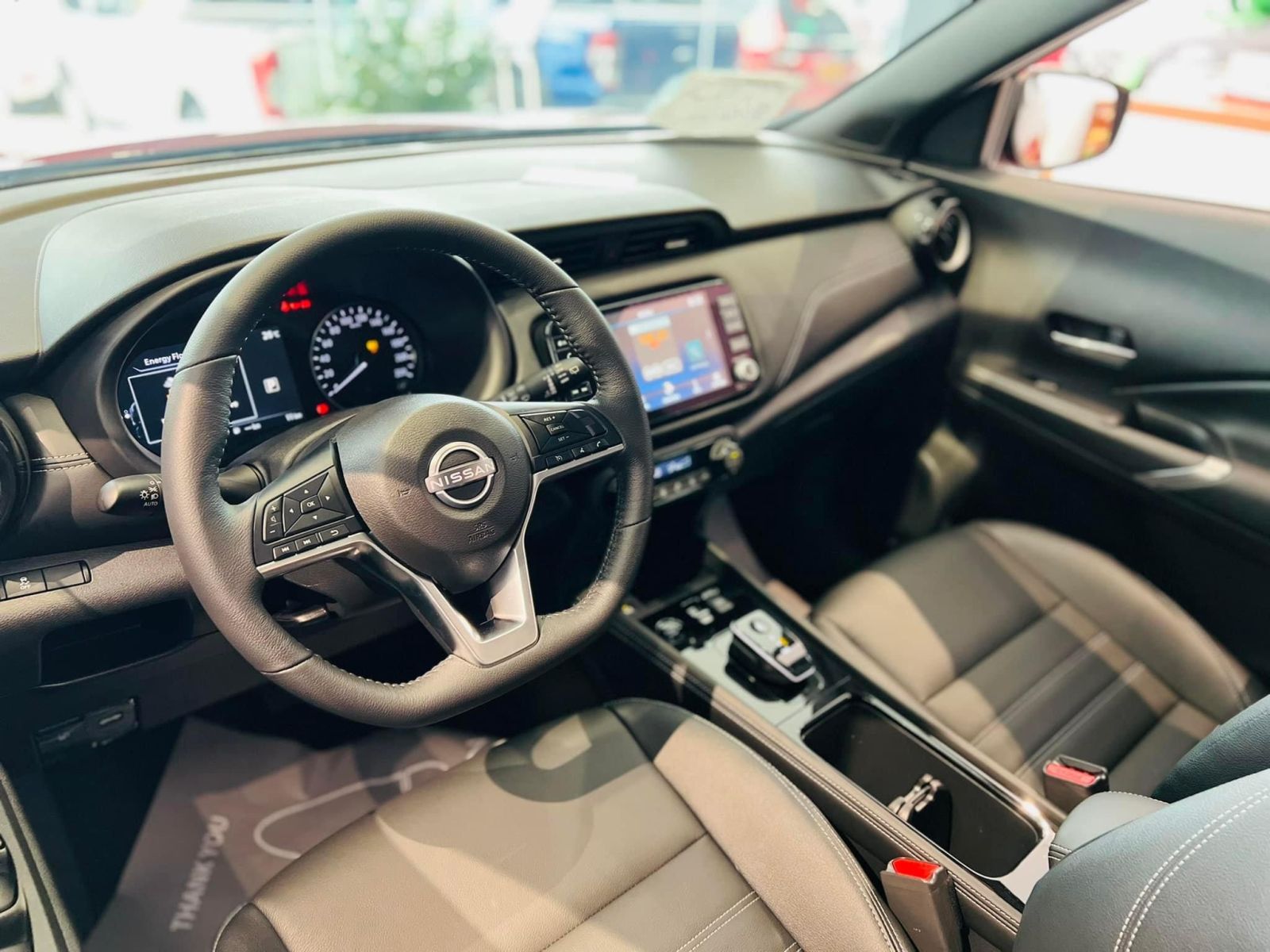 Bên trong, cabin của Nissan Kicks e-POWER trông gọn gàng, tiện dụng và thoải mái. Cách thiết kế cơ bản không khác gì Nissan Almera. Đối diện người lái mà cụm đồng hồ cơ kết hợp với màn hình kỹ thuật số 7 inch.